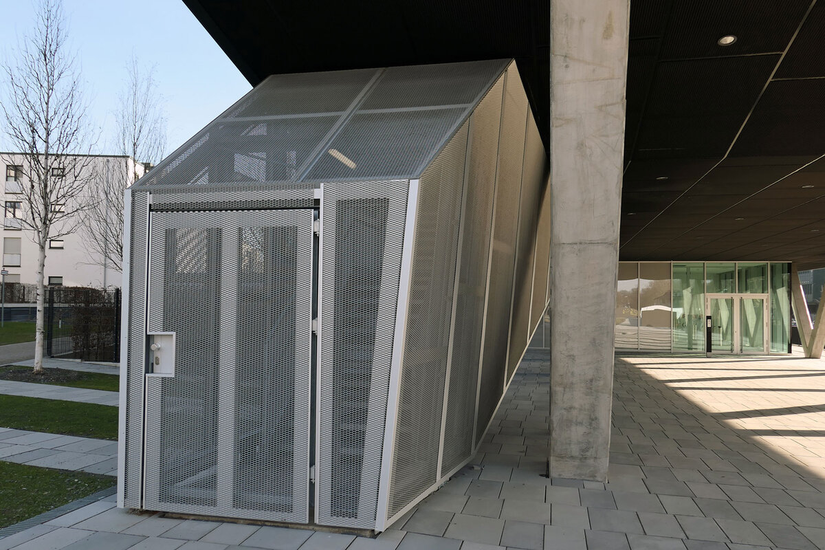 MH 1: Elementfassde mit Prallscheibe, Pfosten-Riegelfassade