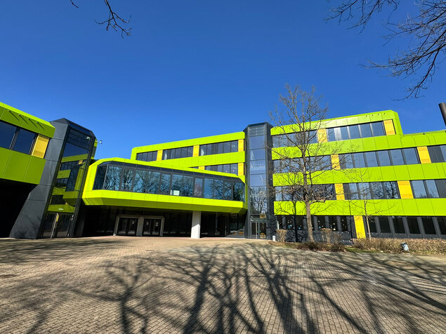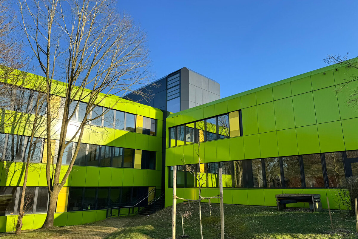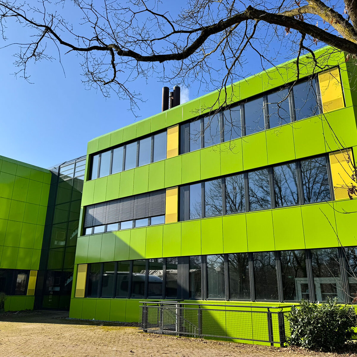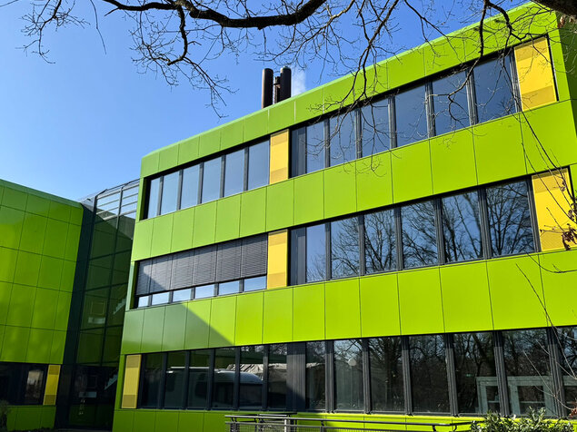 Fensterbandfassade mit VHF Aluminiumblech als Konstruktion mit reduzierten Wärmebrücken